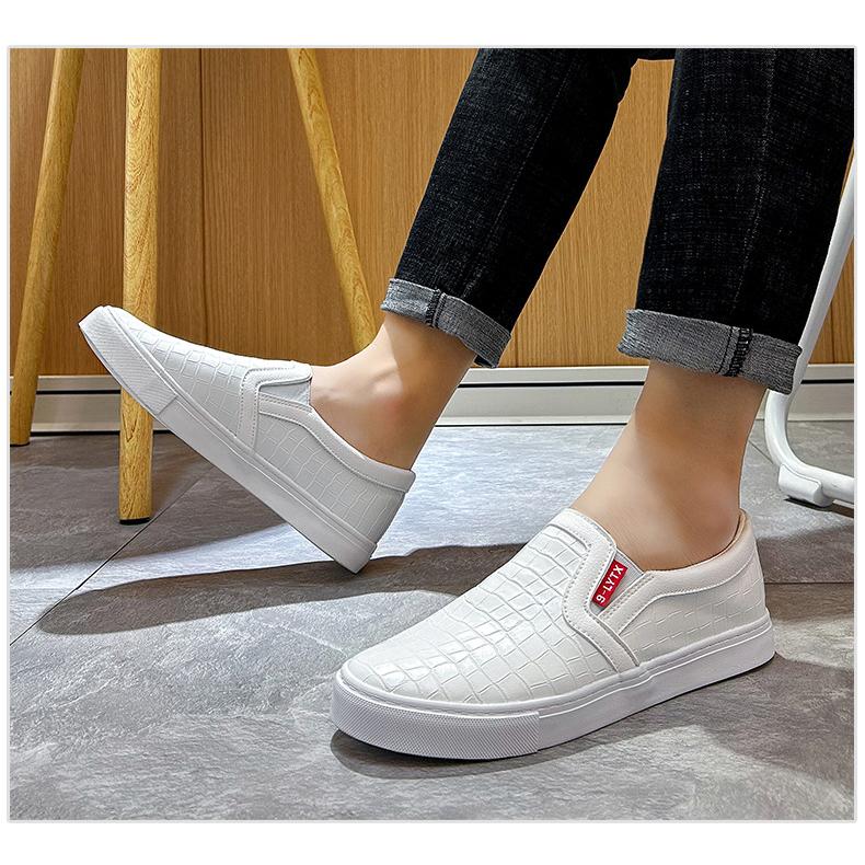 メンズ レザー スリッポン 革靴 ローカット カジュアルシューズ スニーカー レザースニーカー 靴 シューズ 男性 疲れない 歩きやすい レザーシューズ 黒 白