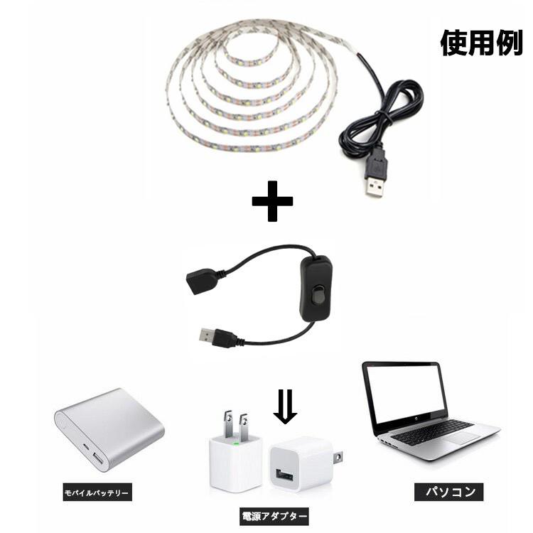 商品特徴:USB TypeA端子との間に接続する事で、電源スイッチの無いUSB機器の電源オン・オフが切替可能になります。弊社のUSB LEDテープライトなどとの連結使用は最適!