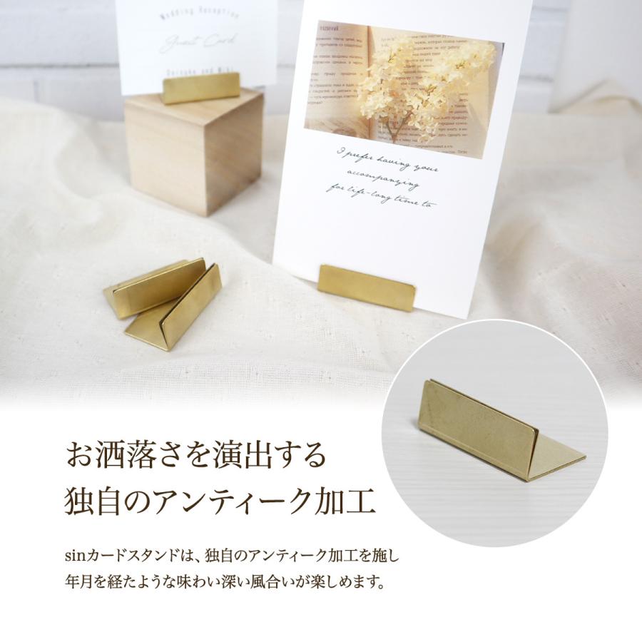 さり気なくカードを引き立てるシンプルな差し込み型の真鍮製カードスタンド。