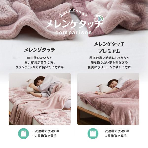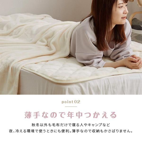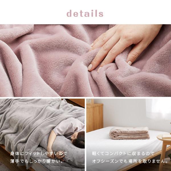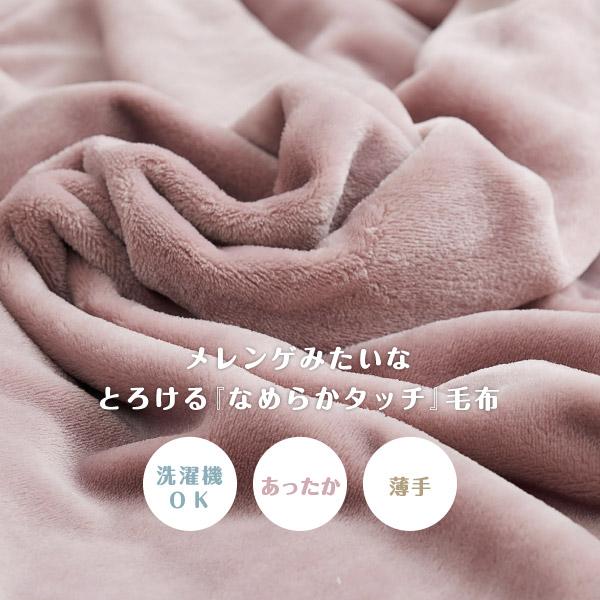 地が見えないほどの毛足密度で思わずなでたくなる肌触りの良いなめらかなタッチ感です。洗濯機で洗えるので、汚れても安心です。とろけるような手触りと軽やかな2層構造で、秋冬以外でもつかえます。薄手タイプなので年中毛布を使う方にもおすすめ。