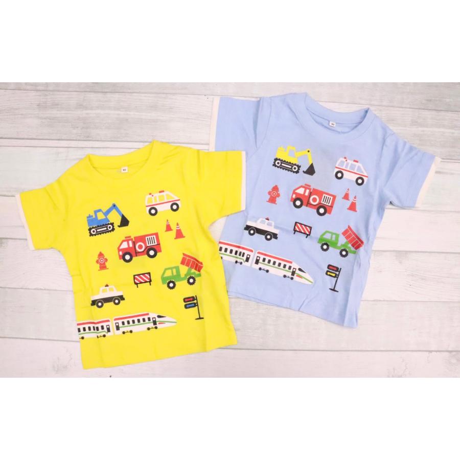 子供たちが大好きな電車や働く車がプリントされた半袖Tシャツです。