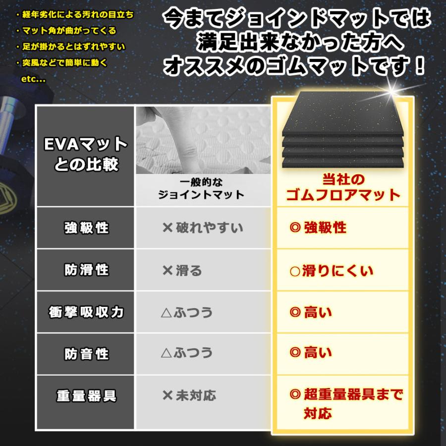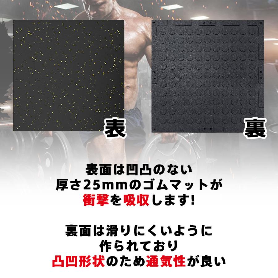 ◆参照説明◆1セット(4枚入り)サイズ(1枚)100cm×100cm / 厚さ2.5cm重さ:1枚 20kg / セット(4枚入り) 80kgカラー:ブラック、イエローチップ、ブルーチップ原産国:中国製トレーニング用品ゴムトレーニングマット