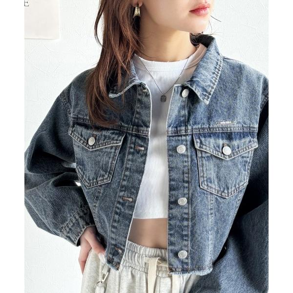 商品名:【mily bilet】オリジナルプレートが光る!綿100%フリンジデニムジャケット(ショート丈)