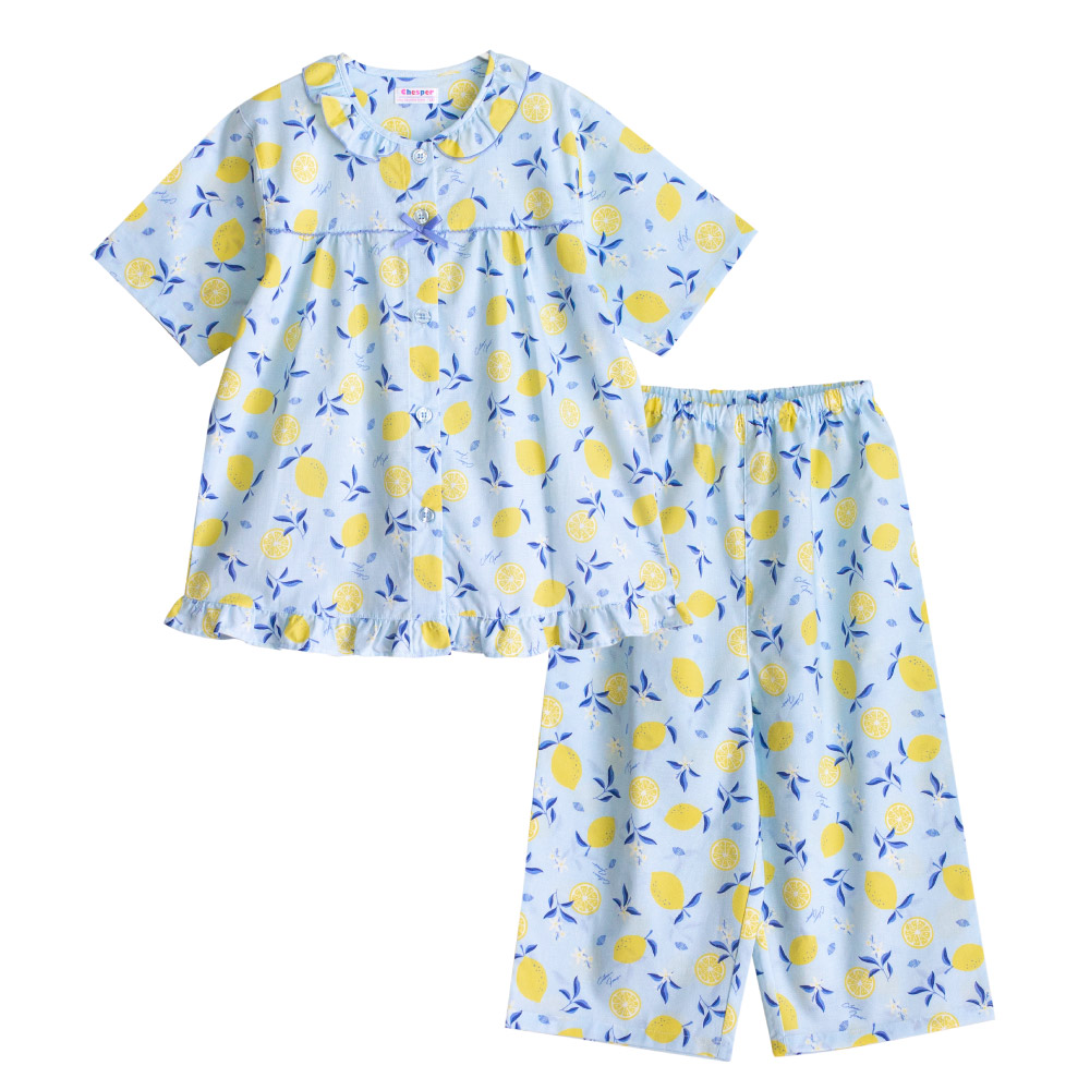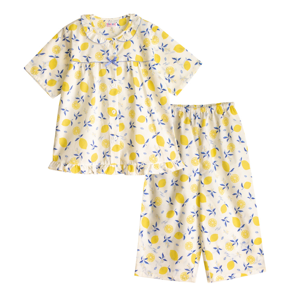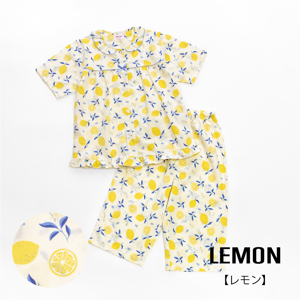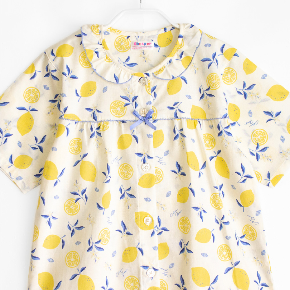 爽やかな色使いが可愛い印象的なレモン柄のパジャマ。
