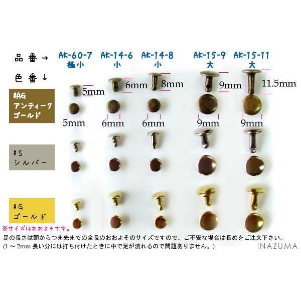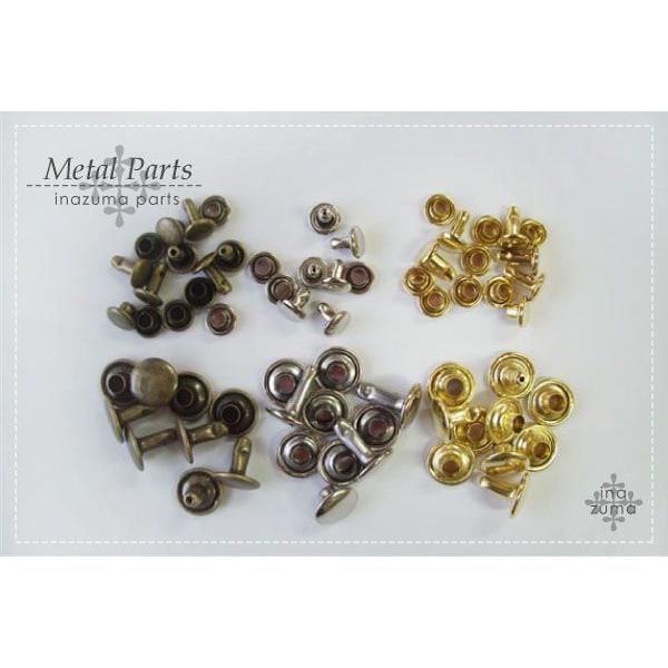 ・素材:鉄(ゴールドのみ真鍮)・カシメの頭 直径:約5mm・カシメの足 長さ:約5mm・20個入り・金具カラー3色:アンティークゴールド、シルバー、ゴールド※ゴールドはネット限定色です。他店舗と同一在庫のため、在庫切れの場合がございます。