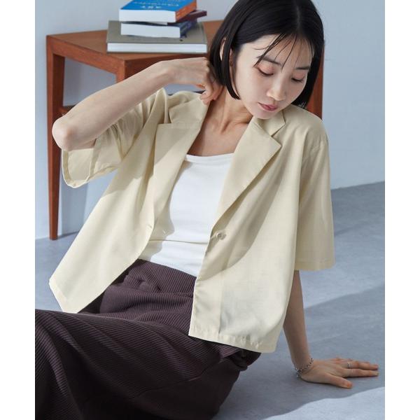 ブラウス シャツ シアー テーラードライク オープンカラー半袖シャツ レディース
