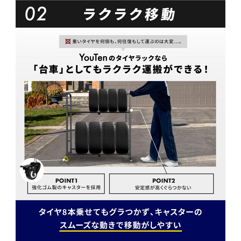 タイヤラック キャスター付き ロック機能付き 2段式 8本 4本 タイヤ収納 普通車 軽自動車 大型車 RV車 4WD SUV 物置 ワイドサイズ 組立簡単 カー用品 タイヤスタンド 保管 スペアタイヤ スタッドレスタイヤ ガレージ収納 タイヤ交換 冬タイヤ 夏タイヤ 収納用品 長持ち 倉庫 ホイール バランサー インチ 車用品 収納 耐久性 スタンド スタッドレス フィールドラック 収納棚 棚 収納 スチール棚 棚 倉庫 ラック 棚 たいや たな 軽自動車 ラック タイヤ カバー 棚 ラック カバー タイヤ置き台 タイヤ保管ラック 屋外 横置き 車 軽トラ コンパクト 小型 省スペース スリム 倉庫 ホイール べランダ ワイド ガレージ バイク