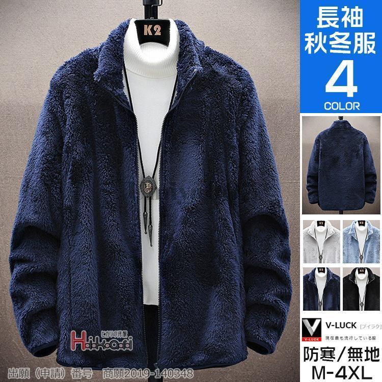フリースジャケット メンズ ファー シャギーボア ブルゾン アウター コート 無地 スタンドネック 秋冬 アウトドア