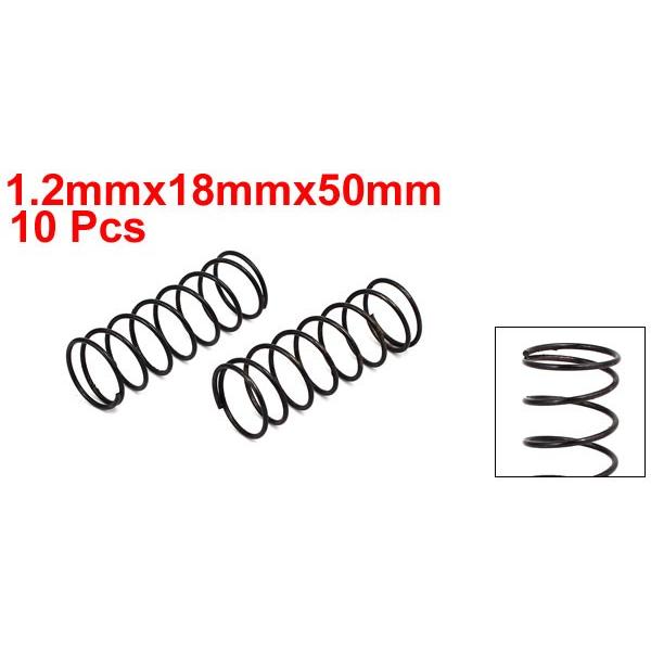 【本商品は海外出荷】お届けは通常20-30日を頂いております。製品名:圧縮スプリング; カラー:ブラックワイヤー直径:1.2mm; 外径: 18mm材質:スプリングスチール; 重さ: 39gパッケージ内容:圧縮スプリング10個入り総自由長:50mm