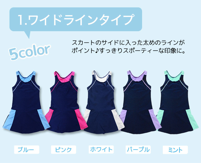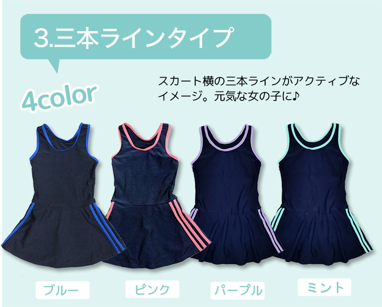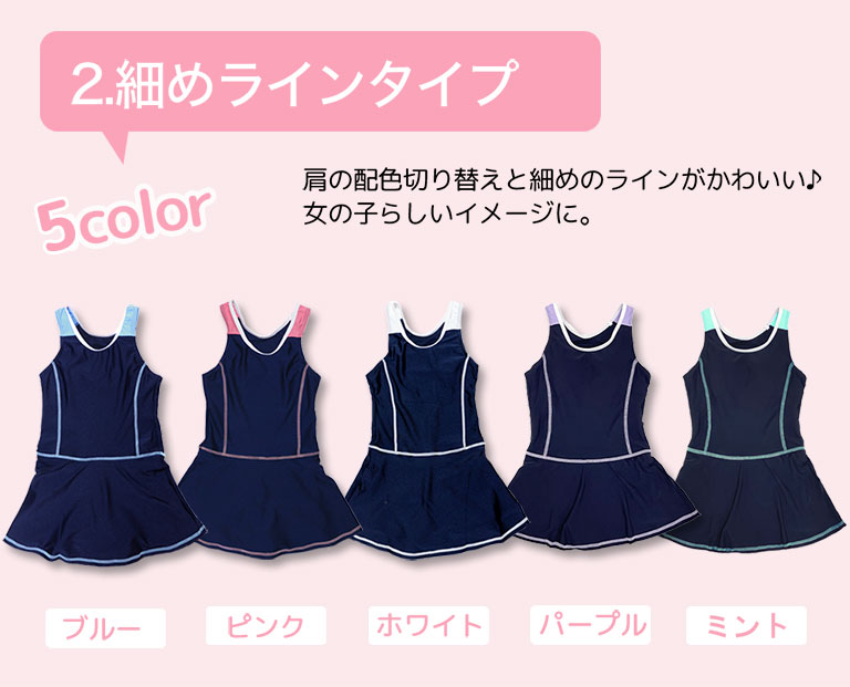 カラーラインがかわいいワンピースタイプのスクール水着♪