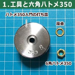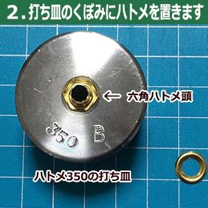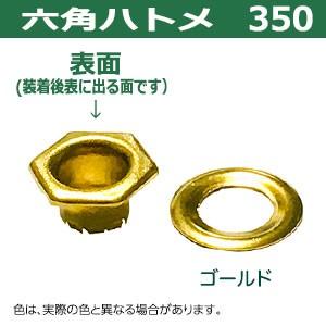 六角ハトメ350【ゴールド】【サイズ 外径5.5mm 内径5mm 傘径10×9mm高5mm】【材質:真鍮 】 25セット入1袋