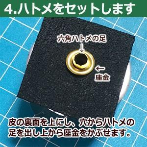 補強しようと思う穴の大きさからハトメの内径を選び、布や紙・革の取り付ける物の合計厚みからハトメの高さをお選びください。