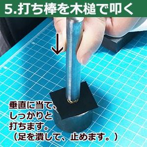 専用の工具(手打ち棒かハンドプレス)で上からしっかりと叩いてください。