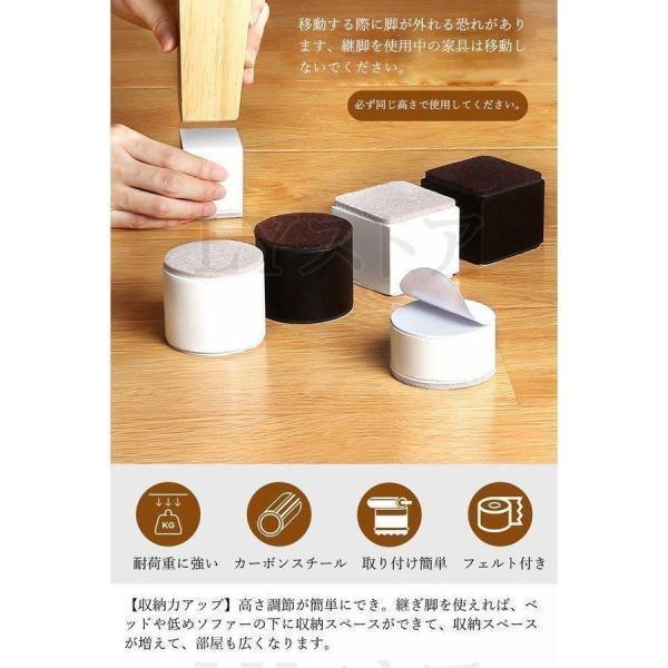 収納力アップ高さ調節が簡単にでき。継ぎ脚を使えれば、ベッドや低めソファーの下に収納スペースができて、収納スペースが増えて、部屋も広くなります。