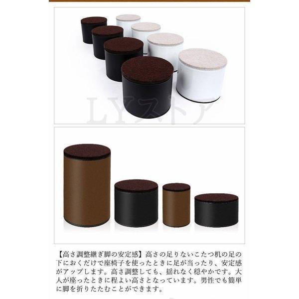 高さ調整継ぎ脚の安定感高さの足りないこたつ机の足の下におくだけで座椅子を使ったときに足が当ったり、安定感がアップします。高さ調整しても、揺れなく穏やかです。大人が座ったときに程よい高さとなっています。男性でも簡単に脚を折りたたむことができます。
