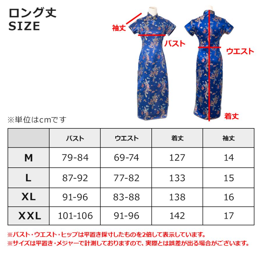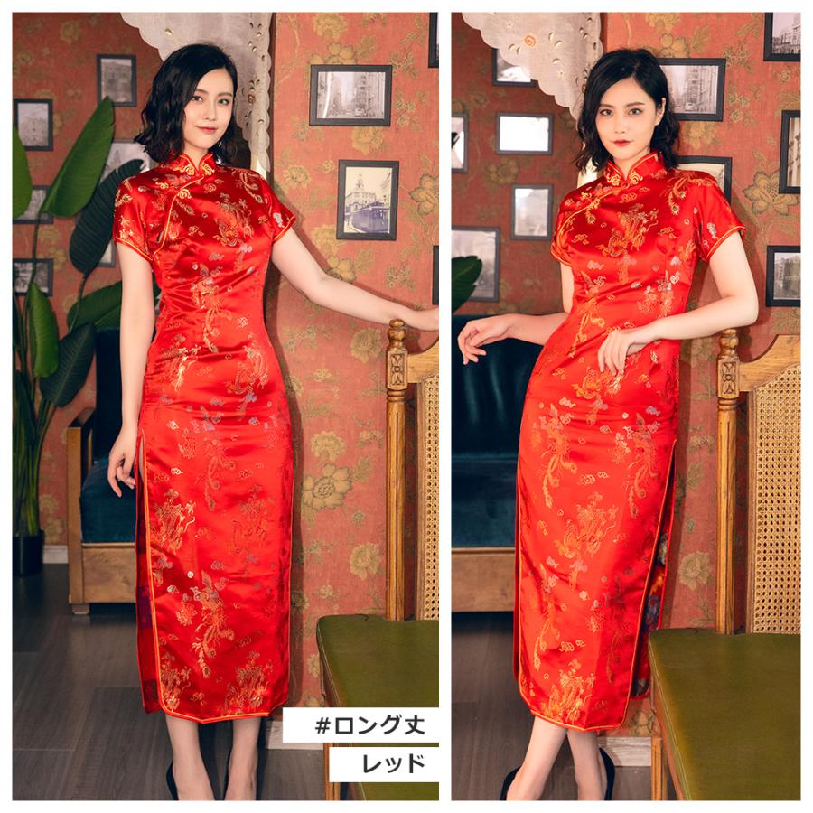 ロング丈のチャイナドレスは、全体的に優雅で上品な印象を与えます。