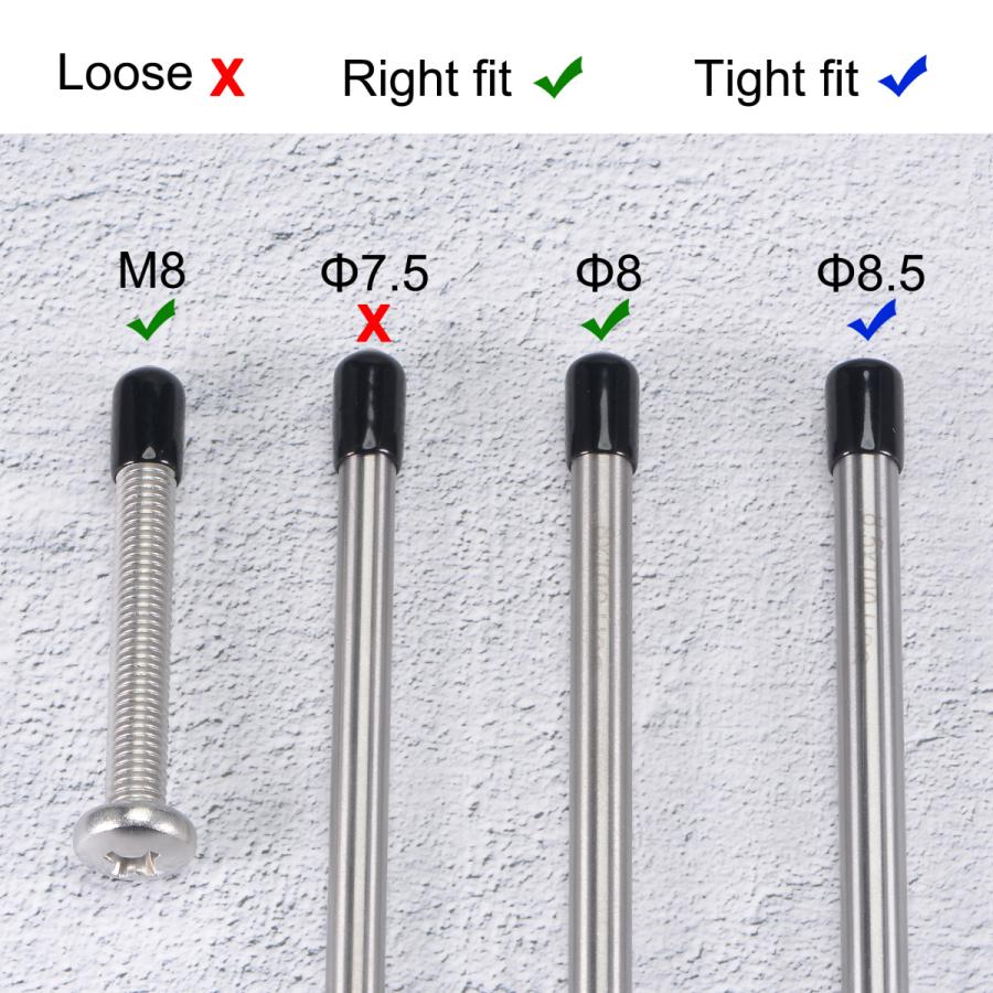 【サイズの選択】ゴム素材は柔らかく弾力性があるため、保護する製品の外径よりわずかに小さいゴム製エンドキャップを選択することをお勧めします。例えば:製品の外径は直径9.8 mmです。9.5 mmのゴムカバーを選択してください。