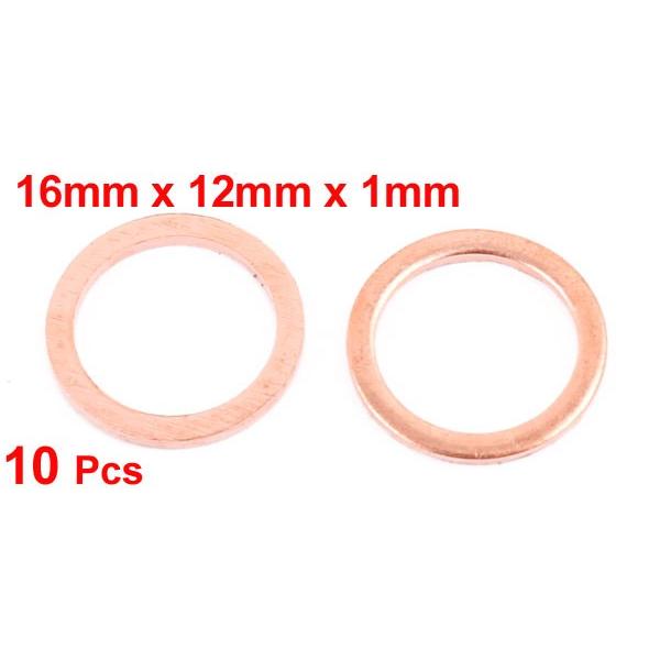 uxcell 平ワッシャ 銅ワッシャー フラットリング クラッシュ シールガスケット ファスナー 16mm x 12mm x 1mm 10個入り