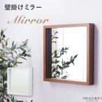 ウォールミラー 木目調 壁掛け 鏡 北欧 ナチュラル 幅42 おしゃれ ミラー 飛散防止 シンプル 正方形 ウォールシェルフ 棚 ディスプレイ ギフト プレゼント