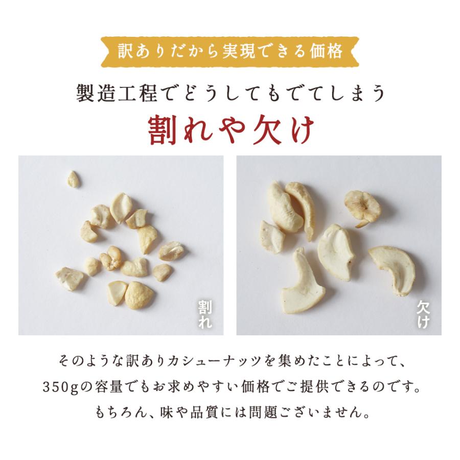 【原材料】■無塩:カシューナッツ(ベトナム産)■有塩:カシューナッツ(ベトナム産)、食塩【内容量】350g【保存方法】直射日光、高温多湿を避けて保存してください。【賞味期限】別途商品ラベルに記載【加工者】株式会社 オーガランド 〒899-4341 鹿児島県霧島市国分野口東1294番1【加工所】鹿児島県姶良市加治木町木田3892-1【栄養成分表示】100g当たり(推定値)■有塩:熱量591 kcal / たんぱく質19.3g / 脂質42.5 g / 炭水化物32.9 g / 食塩相当量0.027 g ■有塩:熱量591 kcal / たんぱく質19.3g / 脂質42.5 g / 炭水化物32.9 g / 食塩相当量0.64 g【その他】※開封後は賞味期限にかかわらずお早めにお召し上がりください。