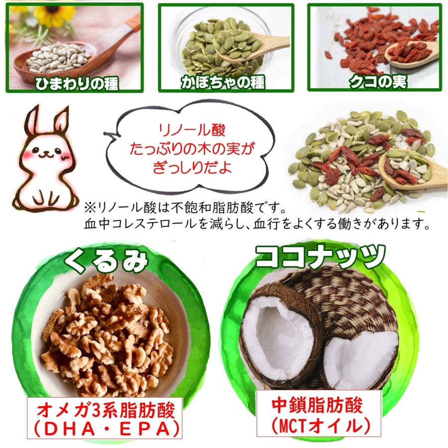 生おから(大分県産大豆ふくゆたか)、有機オートミール、クルミ、プルーン、ココナッツミルク、レーズン、デーツ、アガベシロップ、豆腐、かぼちゃの種、ヒマワリの種、玄米、葛粉、ココア、たんぽぽ根、ごぼう、クコの実、藻塩、食塩