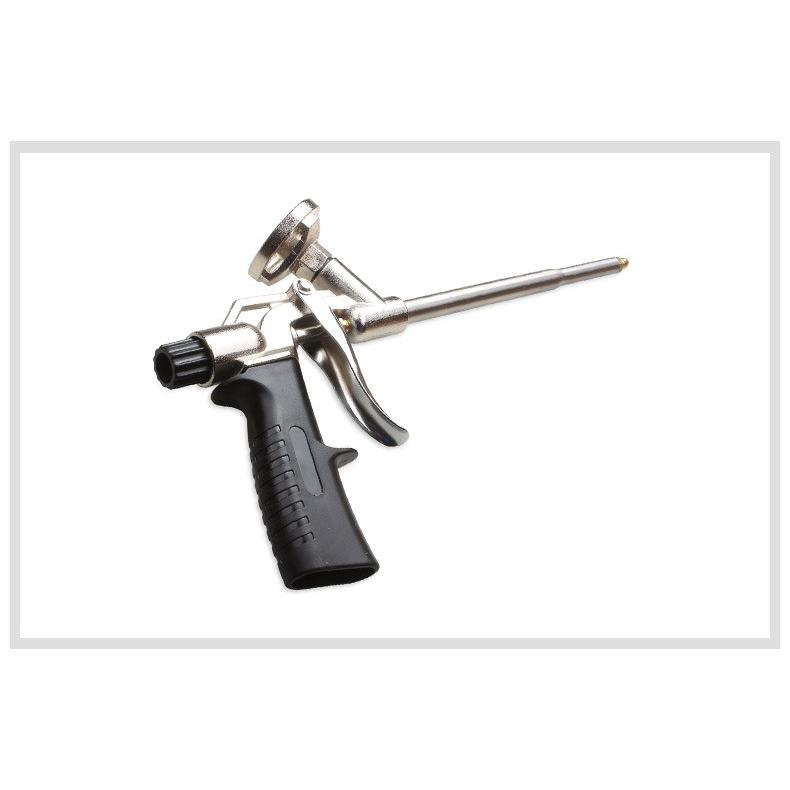 発泡ウレタンスプレー専用フォームガン 専用ノズル(テーパーチップ)2個付き! 専用ノズルをつけることにより、従来よりも絞り込んだフォームの吐出効果を得られ、少量の吐出時でもきめ細くクリーミーなフォームを作れるようになります。 サイズ:約340×195×50mm 重量:287g 後部の黒いつまみ部を回すことで吐出量が調節できます。