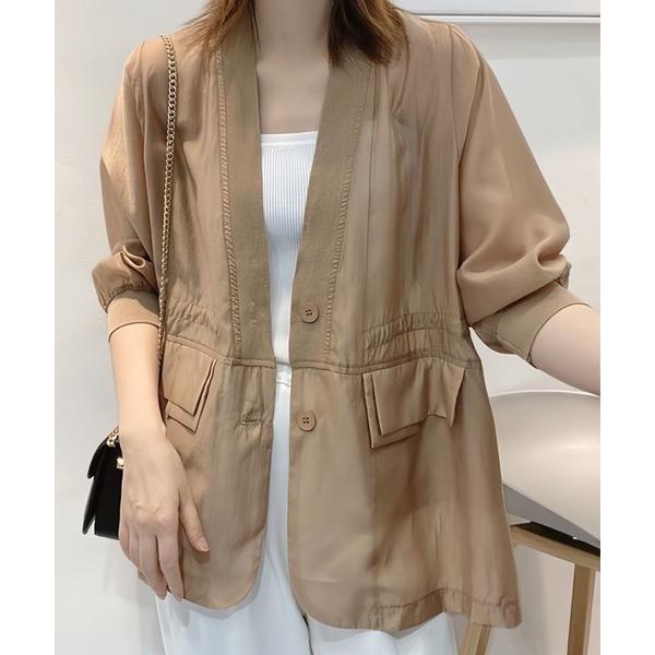 キーワード:ジャケット ノーカラージャケット レディース ロング丈 無地 夏 大人カジュアル 旅行