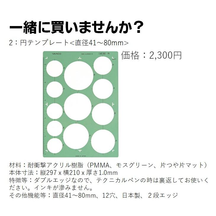 【製品仕様】製品名:テンプレート WE-300メーカー:バンコ材料:耐衝撃アクリル樹脂(PMMA、モスグリーン、片つや片マット)サイズ:縦364x横257x厚さ1.0mmその他:直径80〜120mm 50穴、日本製、2段エッジ