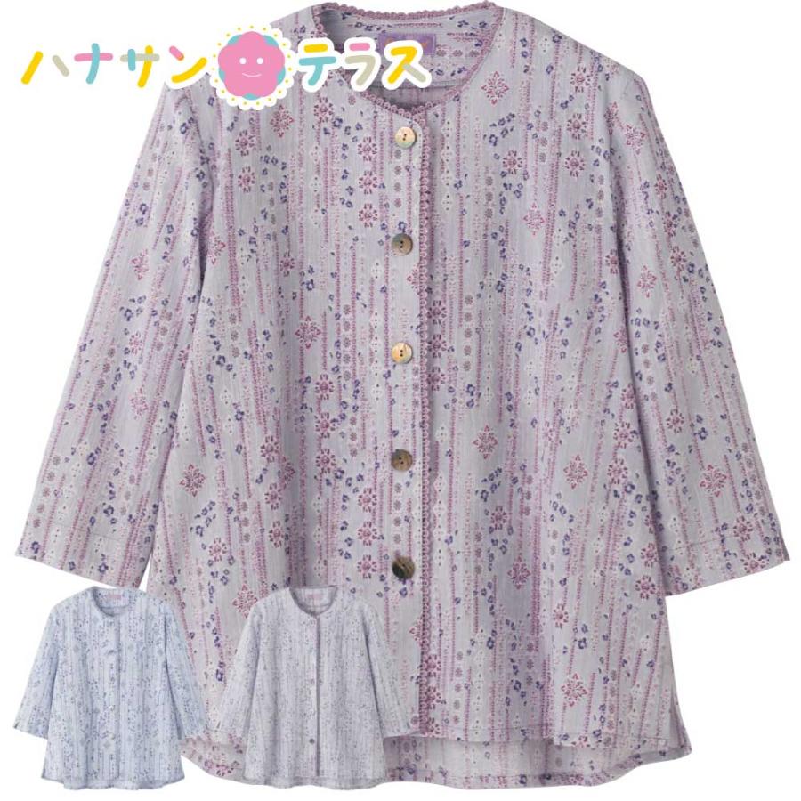 7分袖斜めボタンホールブラウス M L 腰曲がり 体型 シニアファッション 70代 80代 90代 100歳 レディース 婦人 用