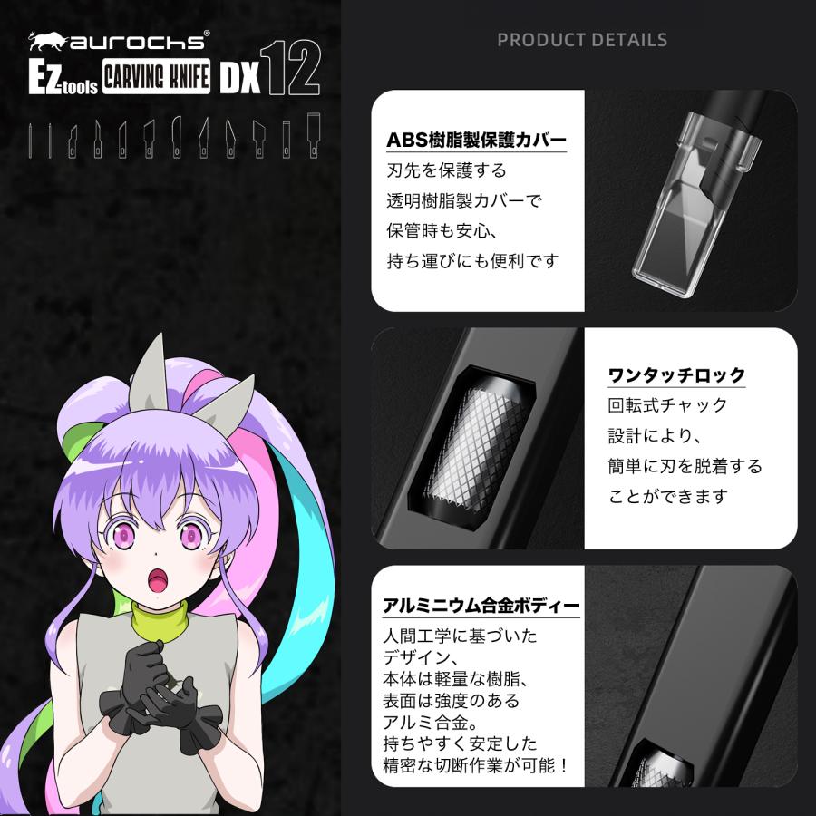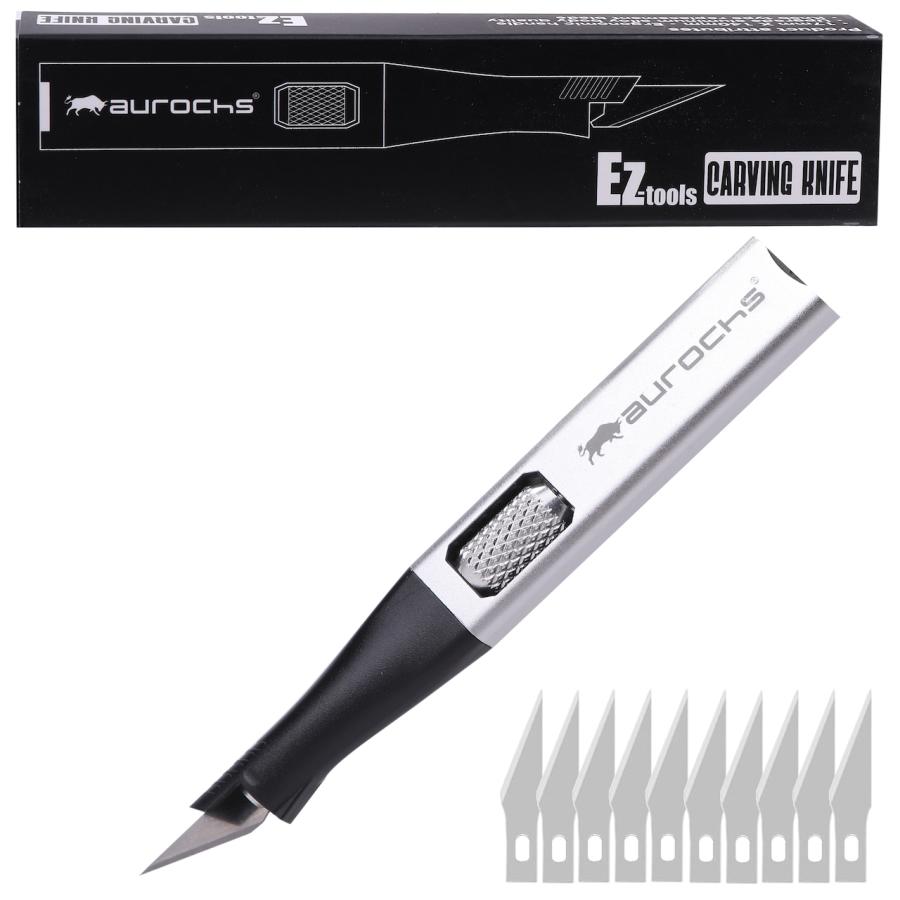 aurochs EZ-tools カービングナイフ 替刃10枚付 高品質 耐久性デザインナイフ アートナイフ クラフトナイフ 細工用カッター クラフトツール 軽量 アルミニウム合金 プラモデル工具 彫刻 切絵 ガンプラ DIY 彫刻刀