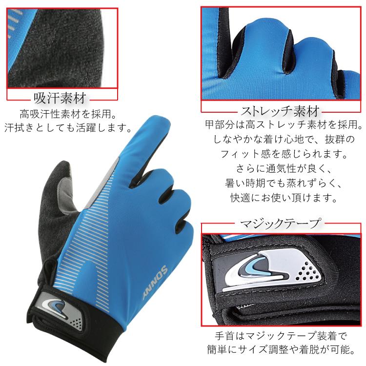 ◎親指部分にはタオル生地を使用しており、簡易な汗拭きとしても大活躍