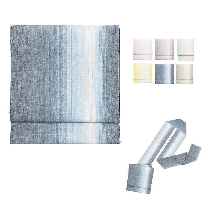 ■お仕立て上がり名古屋帯夏もの帯の定番「麻生地」を使用した名古屋帯です。通気性にすぐれており、涼やかでさわやかな触り心地。ほどよい光沢とシャリ感のある生地が特徴です。白いぼかしラインが涼しげな品のあるデザイン。夏着物に合わせやすい、大人っぽく 落ち着いた定番カラーをご用意しました。■サイズ:全長:約3.6m × 幅:約30cm■素材:麻100%■カラーうす紫/グレー/ミント/黄/紺/茶 ■生産国日本製