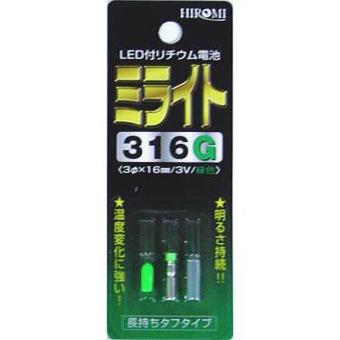 ヒロミ産業 ミライト316B/316W/316G 発光ダイオード付リチウム電池
