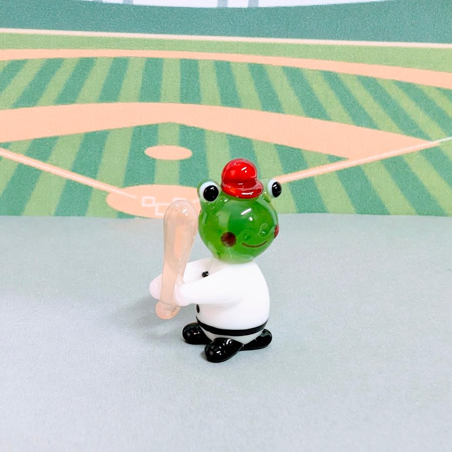 ガラス細工 カエルの野球(バッター)ミニチュア 雑貨 置物 小物 蛙