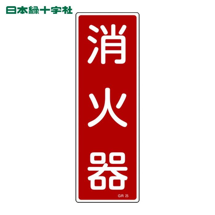 日本緑十字 短冊型安全標識 消火器 GR25 360×120mm エンビ 縦型 (1枚) 品番:093025