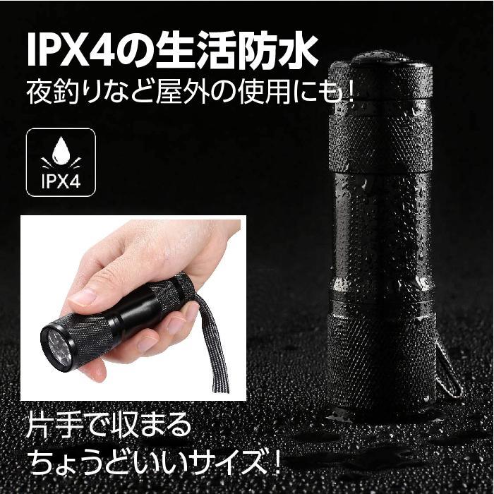 ブラックライト LED 防水 紫外線 UV ライト 懐中電灯 猫のおしっこ 尿 レジン硬化ライト 9灯 UV光照射 ハンディライト 汚れ対策 蓄光ライト 夜光ライト 夜釣り リペア 宝石鑑定 UVランプ ジェルネイル