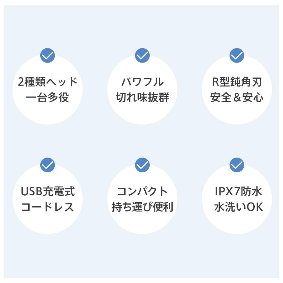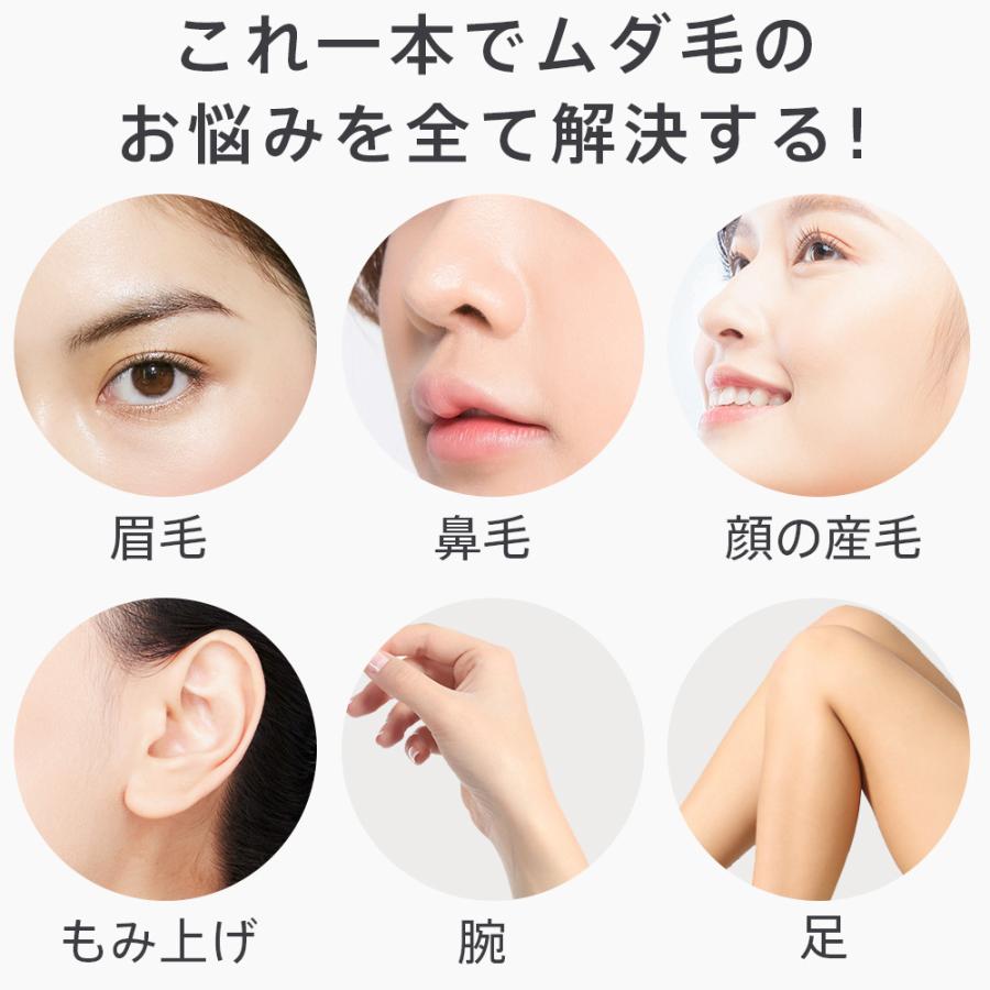 付属品:眉用コーム、鼻毛カッターヘッド、掃除用ブラシ、充電用USBケーブル、日本語取扱説明書