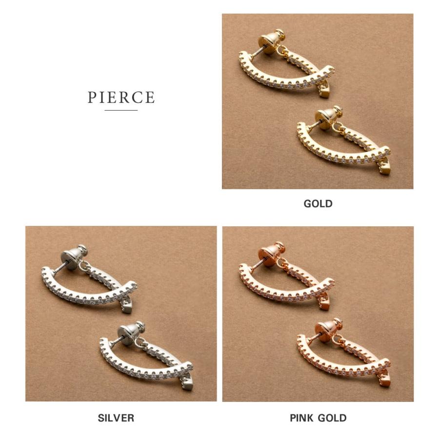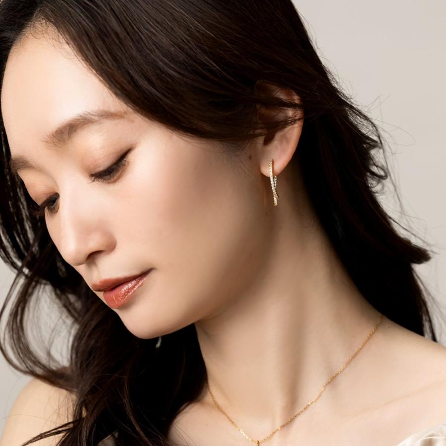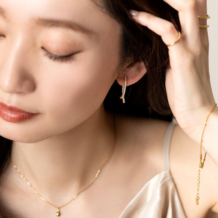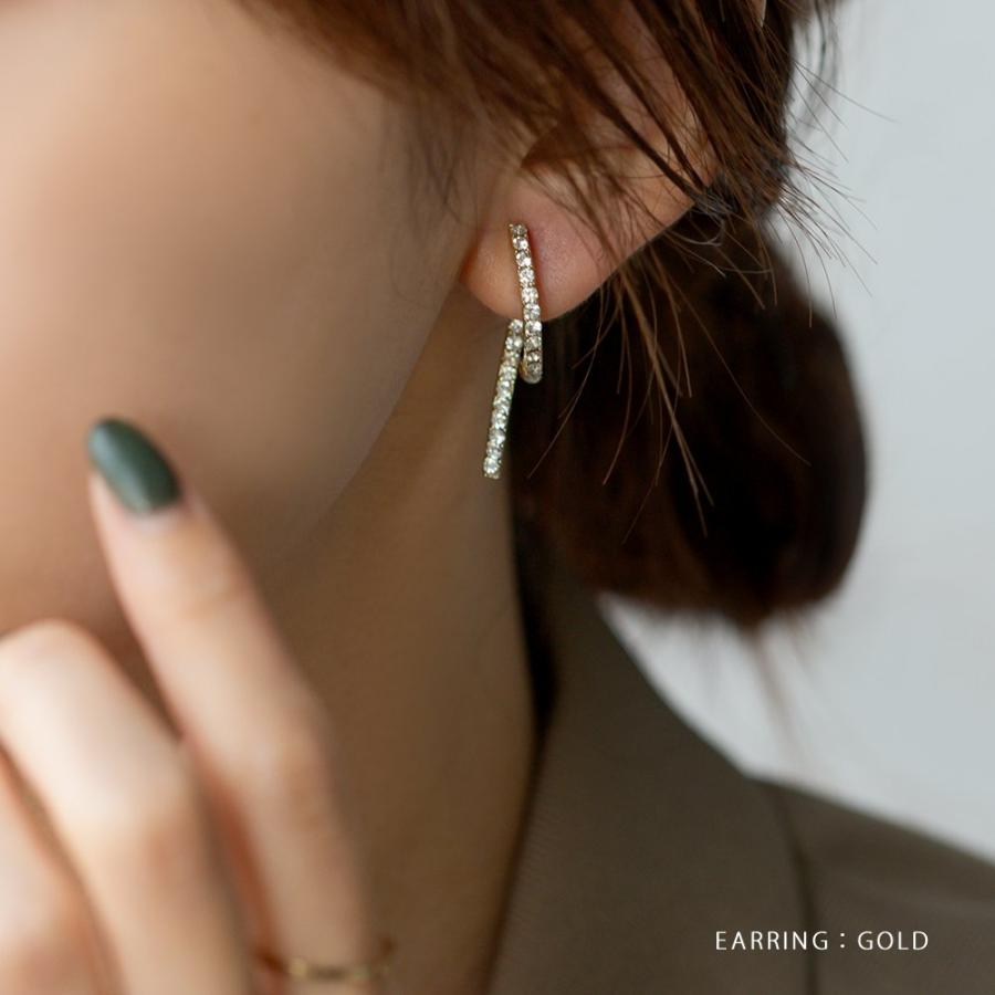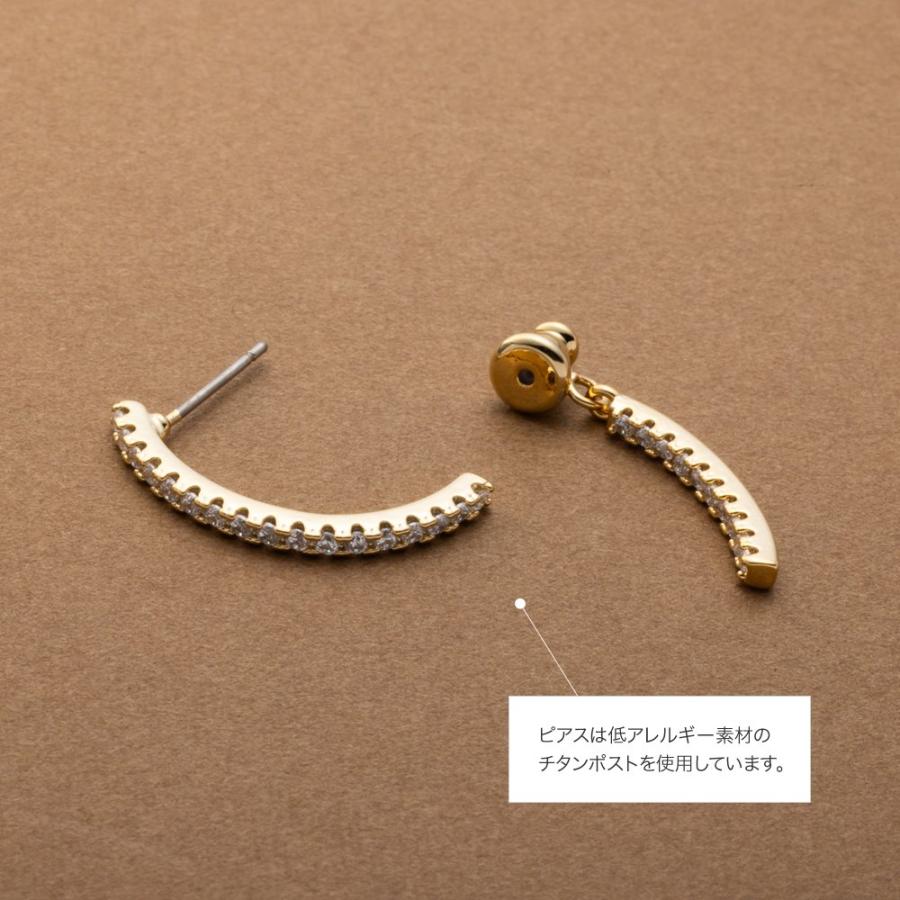 どの角度から見ても大人可愛いバックキャッチイヤリング/ピアス。ビジューラインがお顔周りを華やかに魅せ、グッとこなれた印象を演出します。イヤリングは落ちにくく軽い着け心地のシリコンパッド付きで、使いやすいのも嬉しいひと品。
