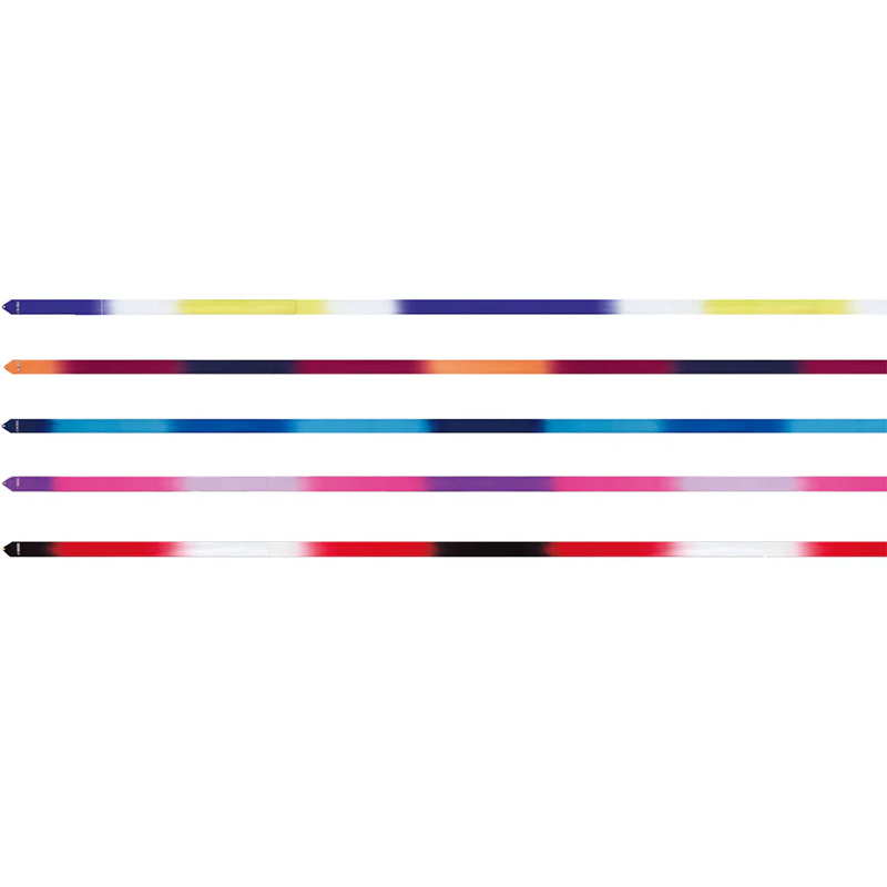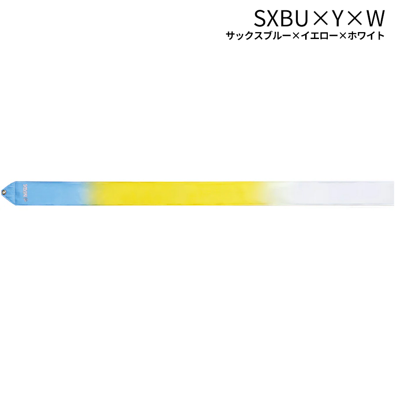 短いピッチで繰り返される3色グラデーションがリボンにスピード感を与えます。