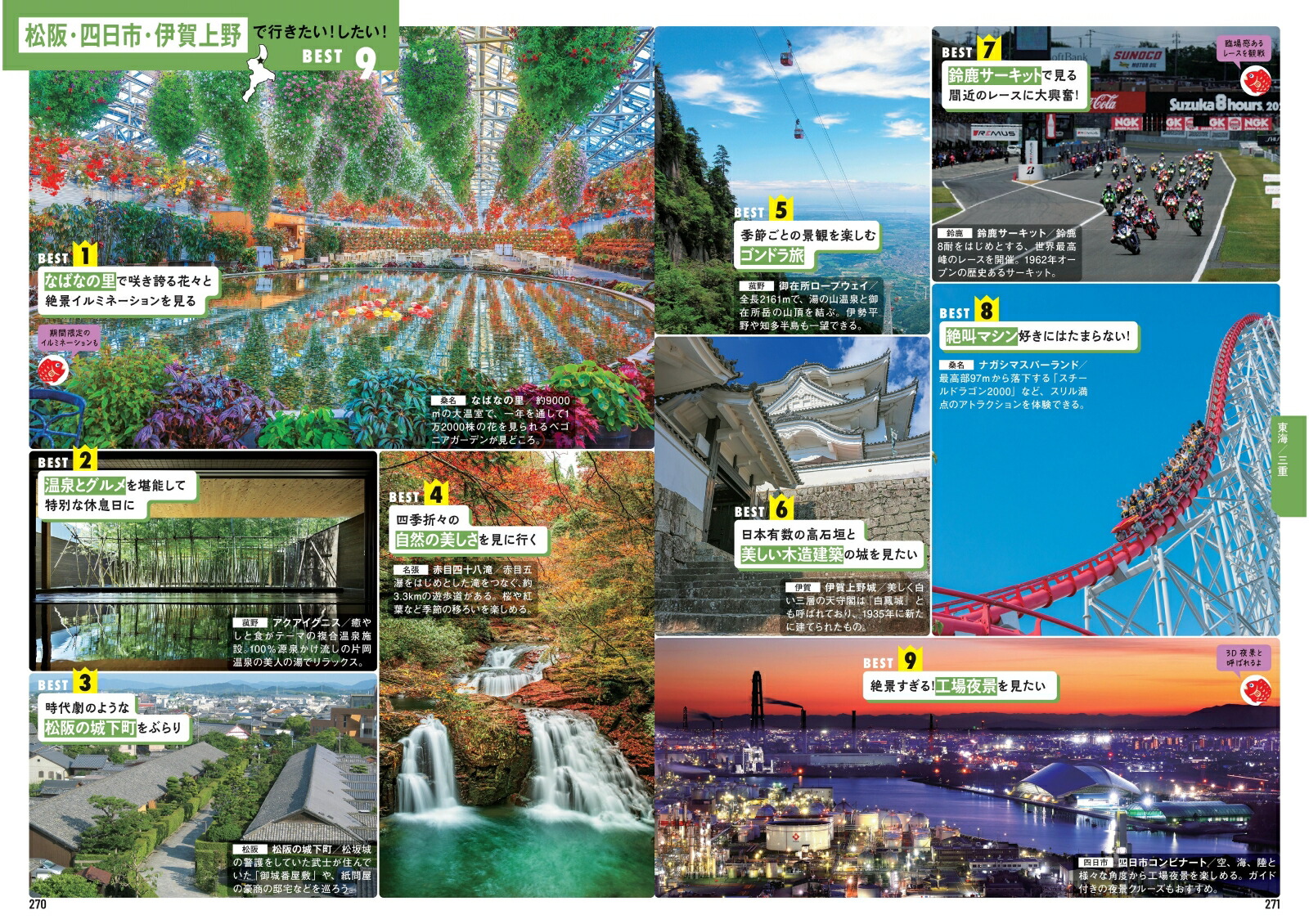 47都道府県別に、1500を超える全国の観光名所、グルメ、名産品を完全網羅! 528ページの圧倒的なボリュームは保存版的な一冊です。都道府県ごとの観光MAPに加え、「見たい、したい」ベストスポット、イベントカレンダーまで「次、どこ行こう?」に答えます!