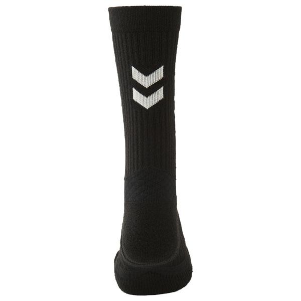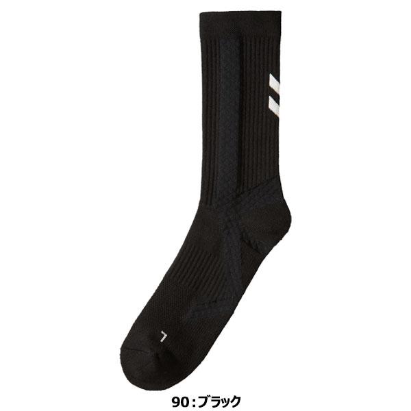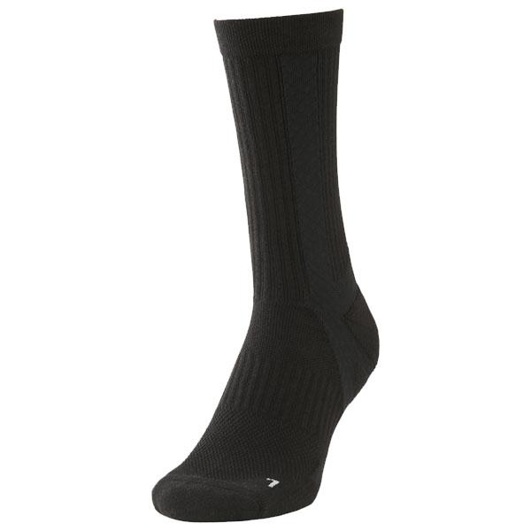 シェブロンロゴがデザインアクセントのロング丈機能ソックス。
