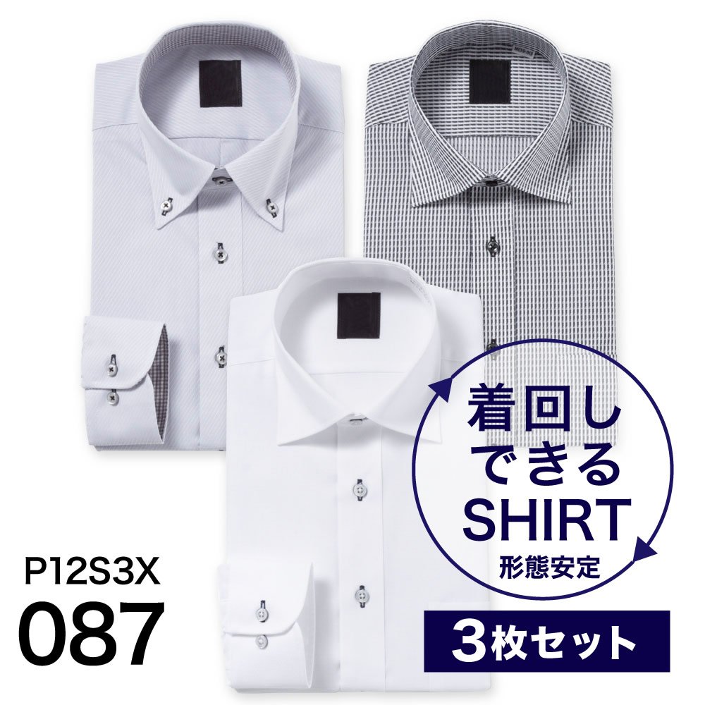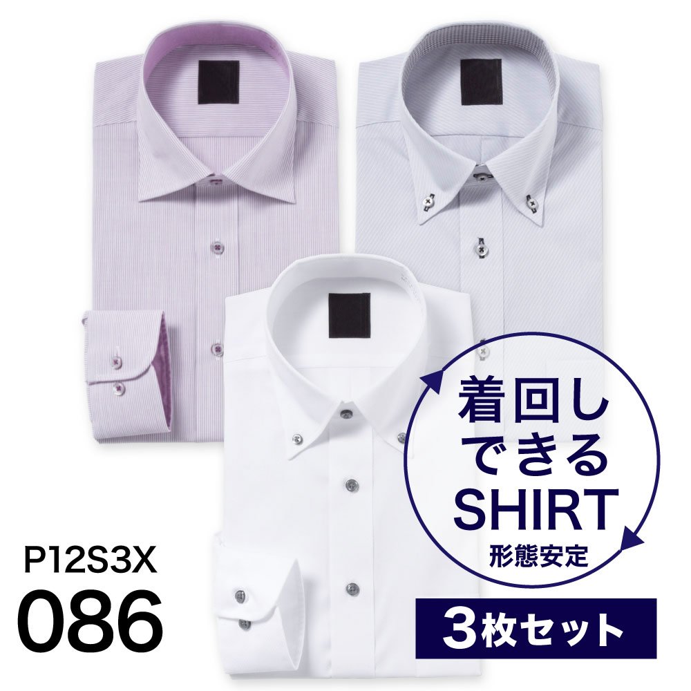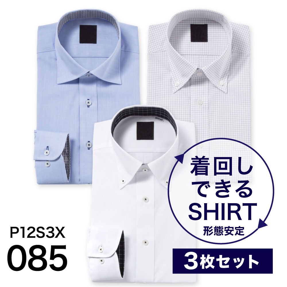 ワイシャツ 3枚セット 長袖 形態安定 形状記憶 Yシャツ メンズ ビジネス ボタンダウン ワイドカラー