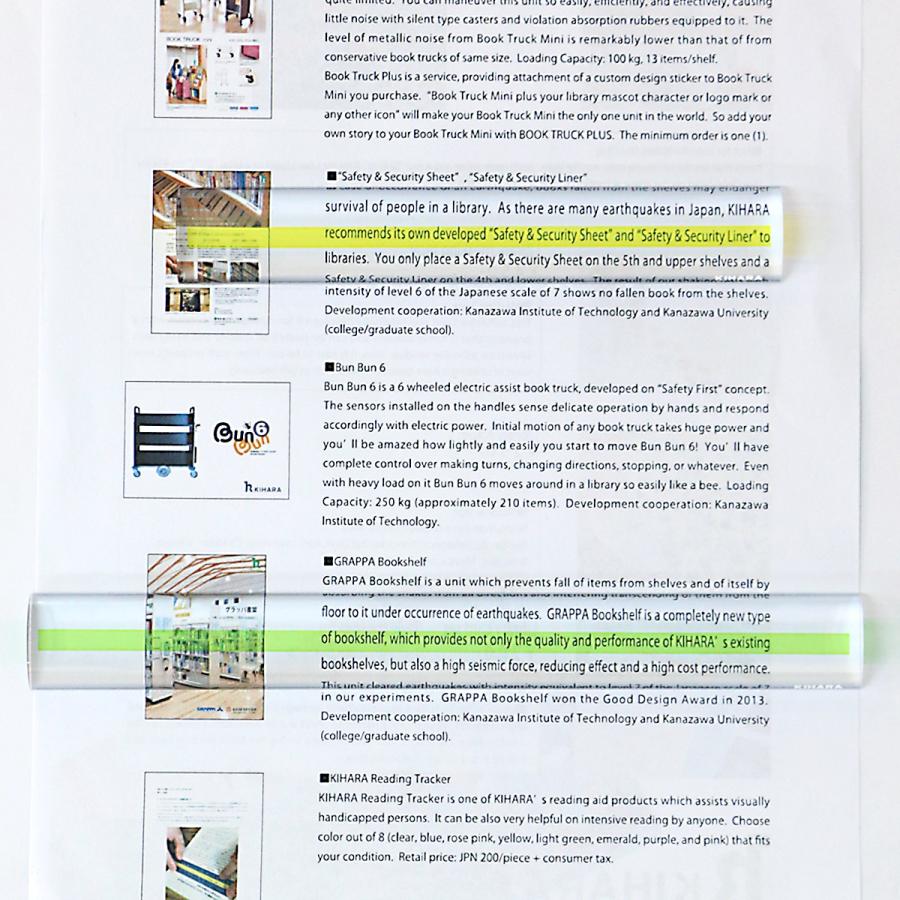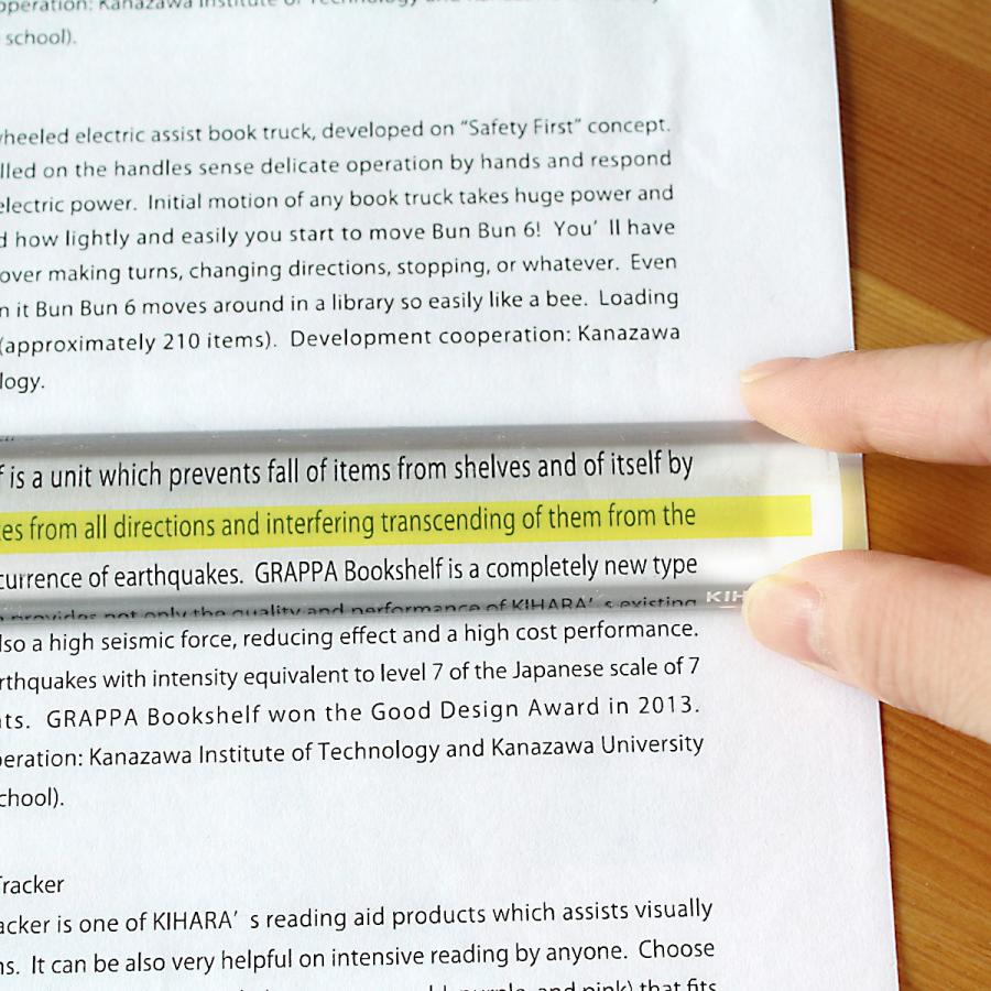 読書補助具のリーディングトラッカーにルーペ機能がついたキハラリーディングルーペ。