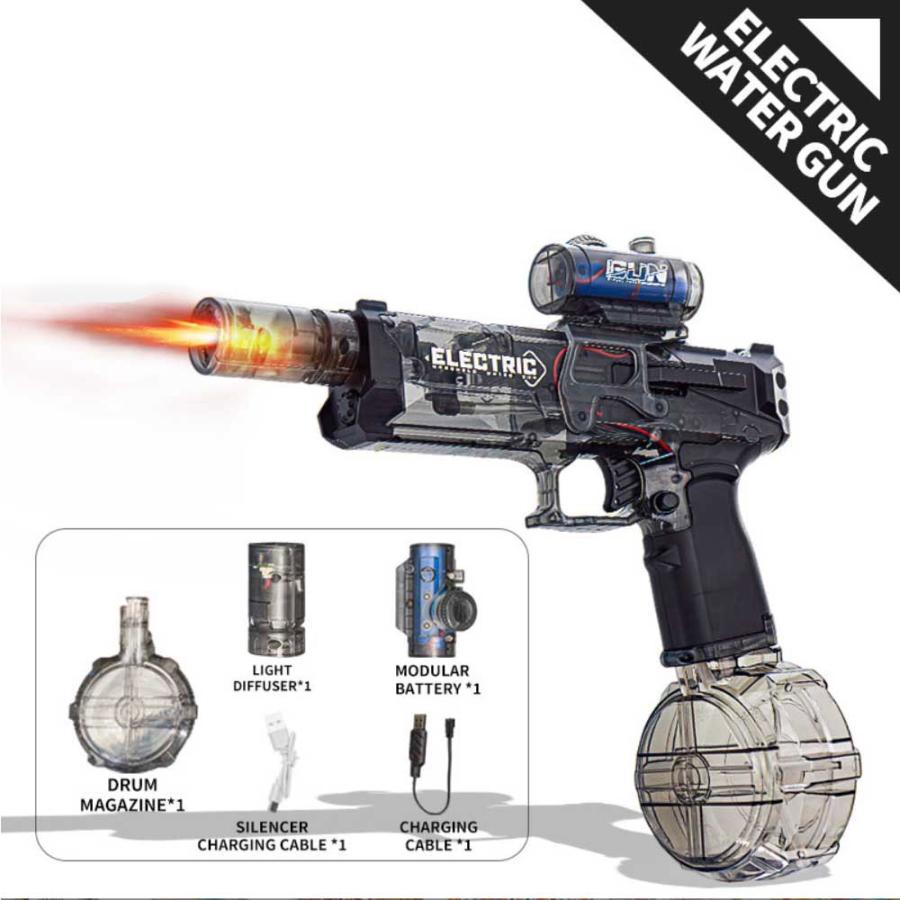 【最新電動式LEDウォーターガン】最新デザインで、普通の水鉄砲と違い、電動連射式LED灯光噴火バージョンなので、トリガーを引くだけで水を自動的に発射したり連射したりできます。子供と大人の両方のための面白い水鉄砲で、誕生日やパーティーなど、男の子や女の子へのプレゼントにも最適です。