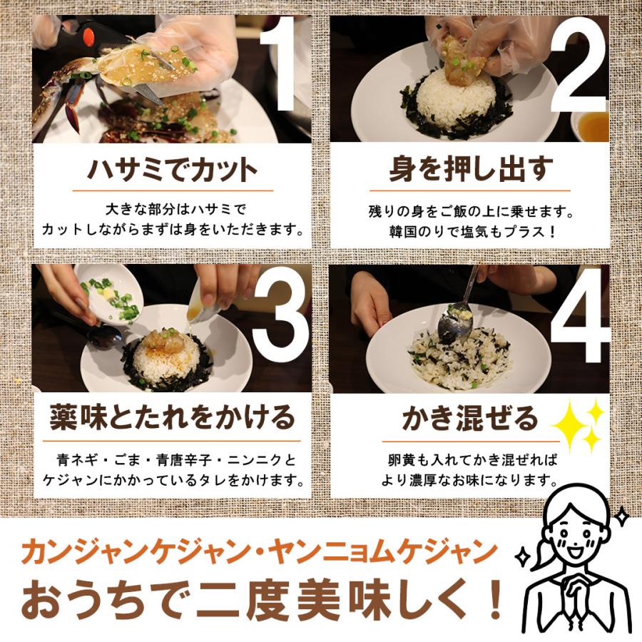 人気のカンジャンケジャンを食べやすい足だけ詰めた商品です。サイズによりカニの足が4〜5本入っています。