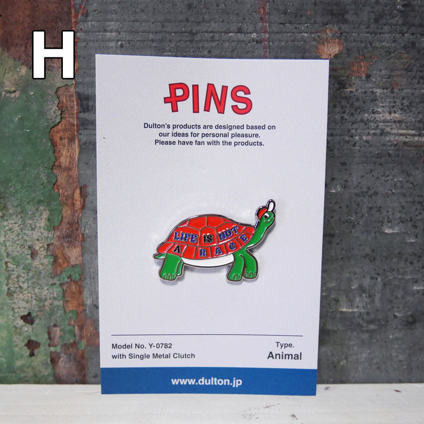 遊び心溢れるDULTONのオリジナルピンズです。「DULTON」「アニマル」「メッセージ」「USロードサイド」の4つのテーマを軸に、個性豊かなアイコンが並びました。その日の気分や性格に合うものをチョイスしてお愉しみください。ギフトやコレクションとしても思わず手に取りたくなるアイテムです。