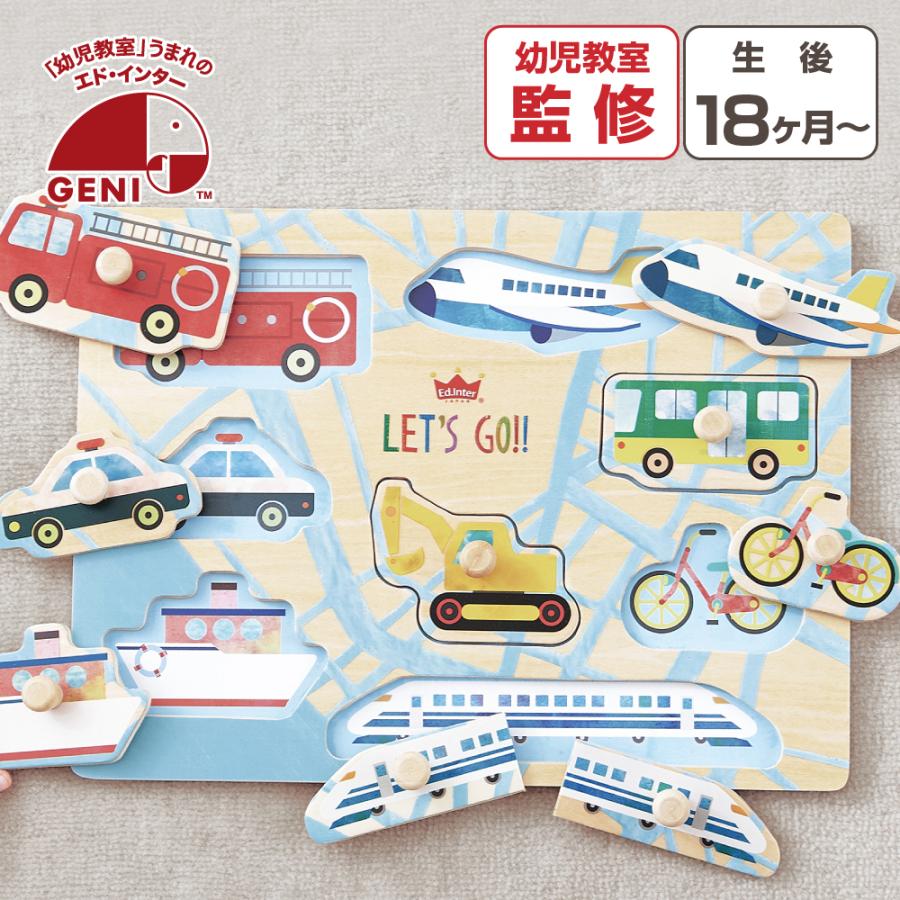 パズル エドインター ED Inter ジェニ GENI わくわくのりもの 4941746813973 知育玩具 木製パズル 幼児 木のパズル 乗り物 知育 パズル 木製 つまみ 一歳 1歳 一歳 1歳半 2歳 3歳 出産祝い 女の子 男の子 木のおもちゃ 知育パズル