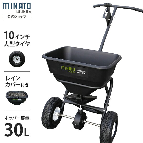 ミナト 肥料散布機 手押し式 ブロキャス30 MBC-30A (容量30L) [肥料散布器 芝生の種まき 目土 融雪剤 塩カル]