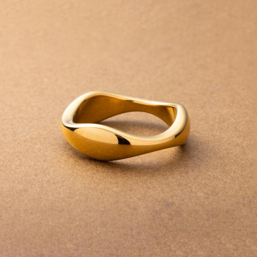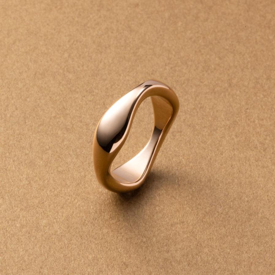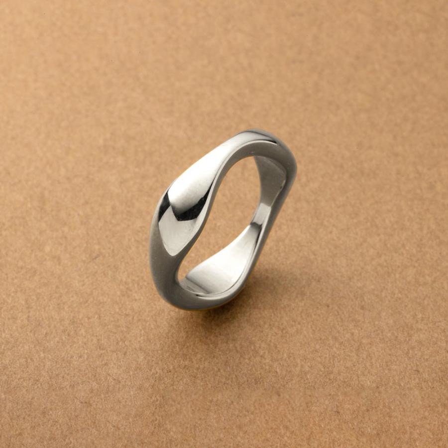 緩やかにウェーブした変形メタルラインがこなれ感のあるデザインリング。角度によって表情を変えるリングは手元に存在感をプラスします。錆びにくいステンレス製で、他のリングとの重ね付けも楽しめるデイリーにオススメなアイテム。