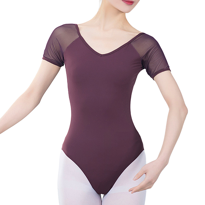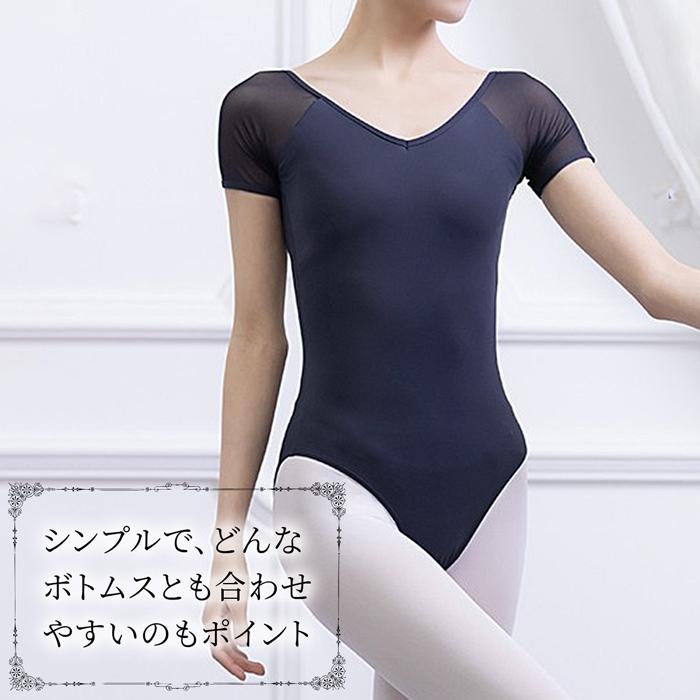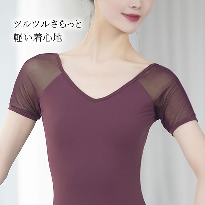 ・透けるメッシュがエレガントな大人の半袖レオタード